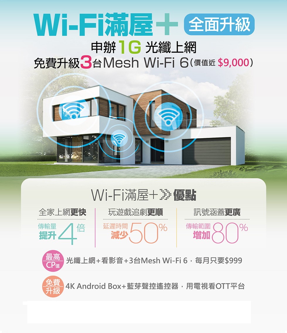 免費升級Wi-Fi6、置Wi-Fi環境,在家上網零死角,全家人享受飆網樂趣!