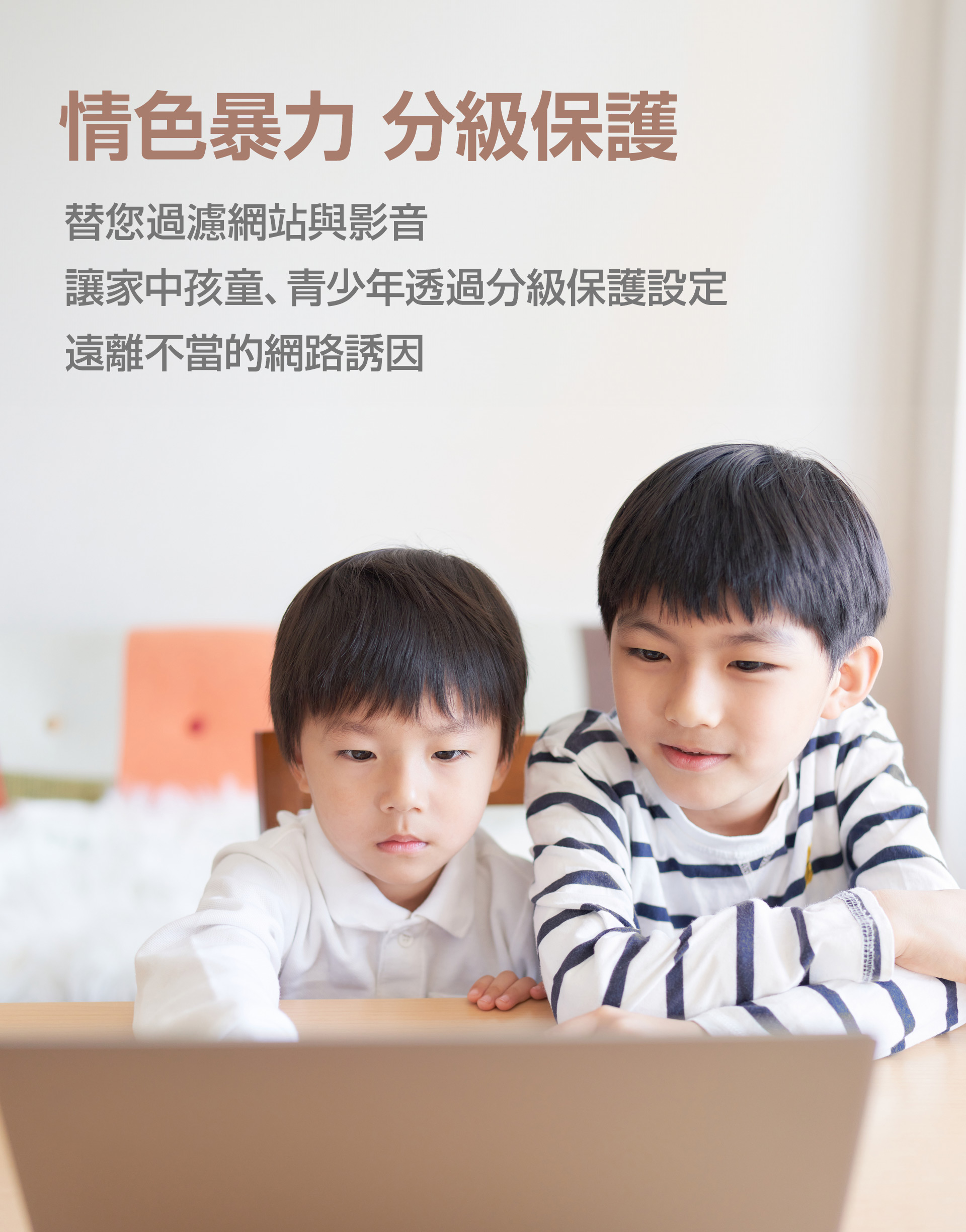 申辦500M-1G上網方案,合約期間免費體驗"網路守護家",可有效防毒防駭防詐騙,提供全家人安全的上網環境!