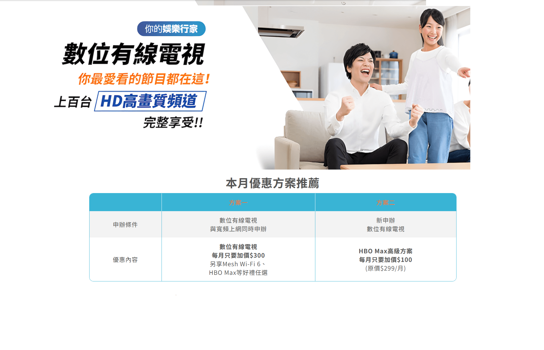 新申辦有線電視,請你看HBO MAX一整年+全新數位頻道家庭經典套餐!